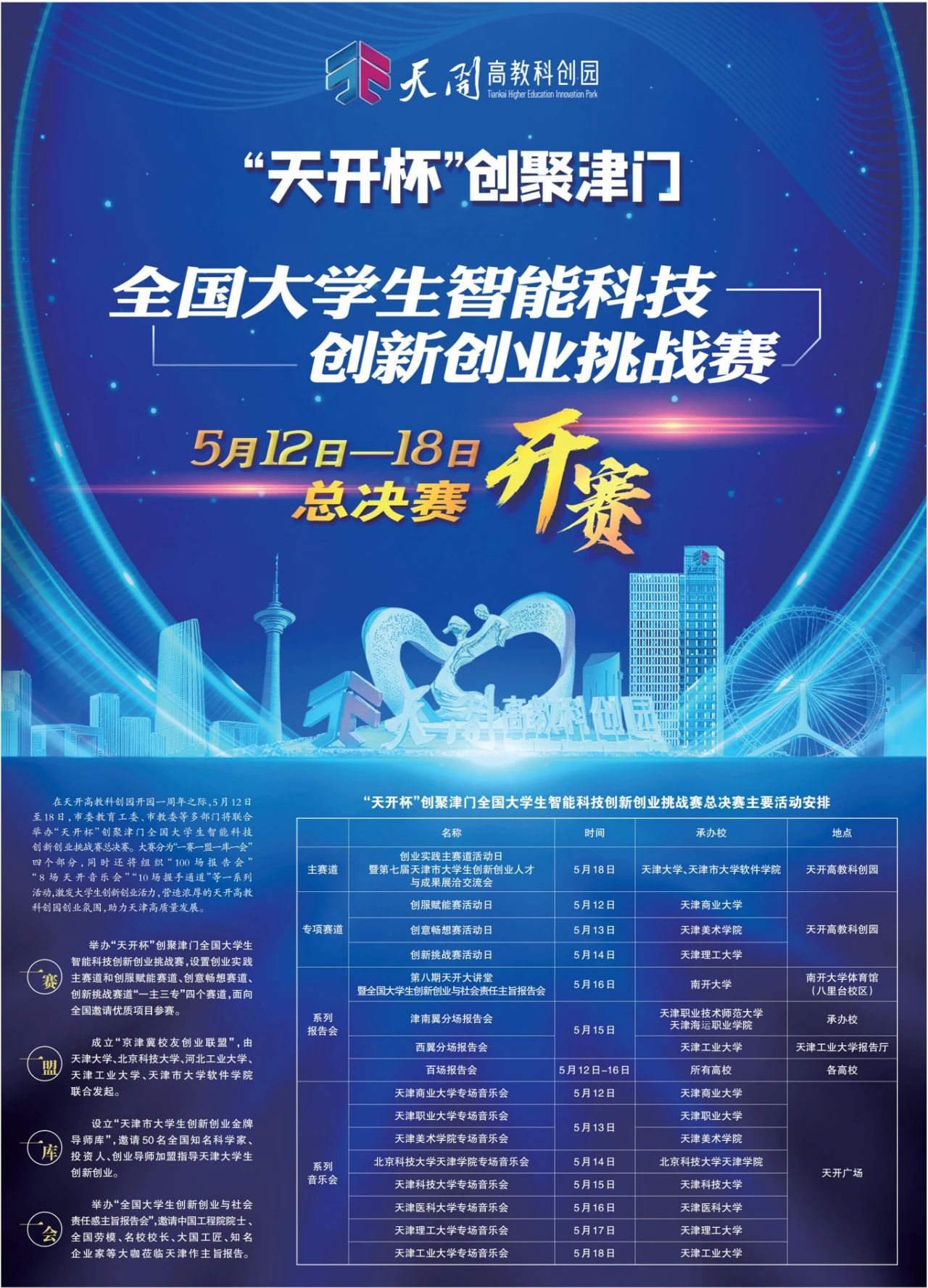在天开高教科创园开园一周年之际,5月12日至18日,市委教育工委、市教委等多部门将联合举办“米兰俱乐部的下载链接”创聚津门全国大学生智能科技创新创业挑战赛总决赛。